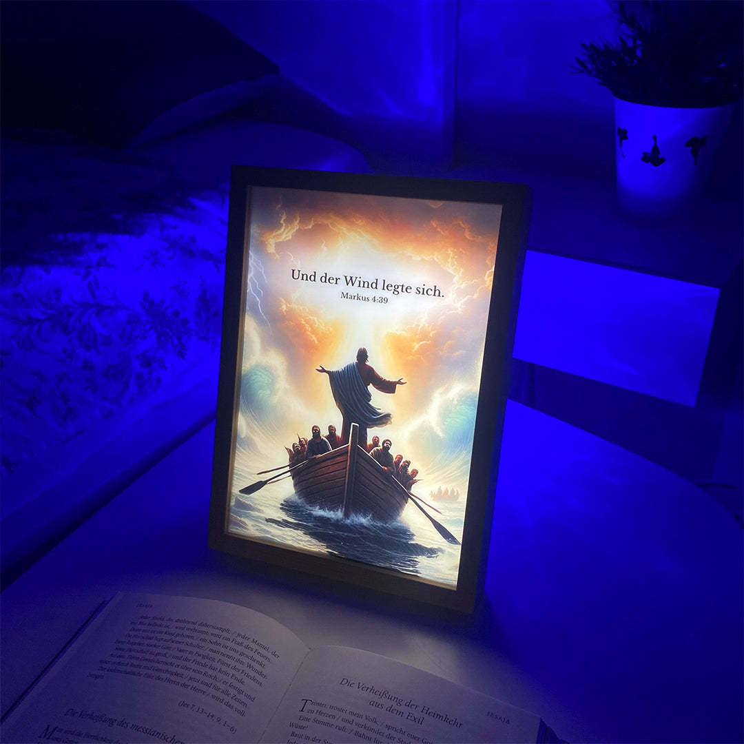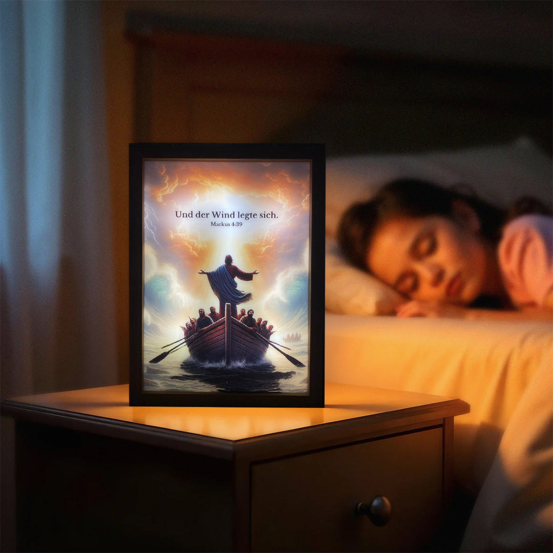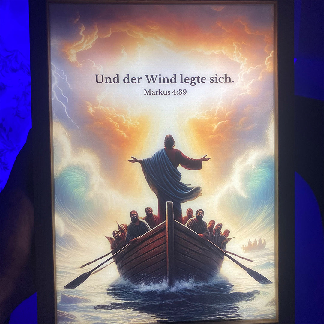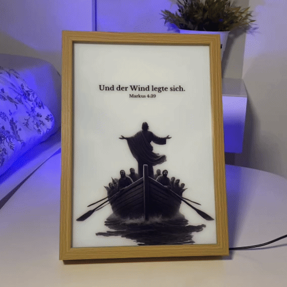 Mit nur einem Knopfdruck erstrahlen unsere Lampen, inspiriert von der Bibel, und schenken dir einen leuchtenden Moment voller Gottes Nähe.